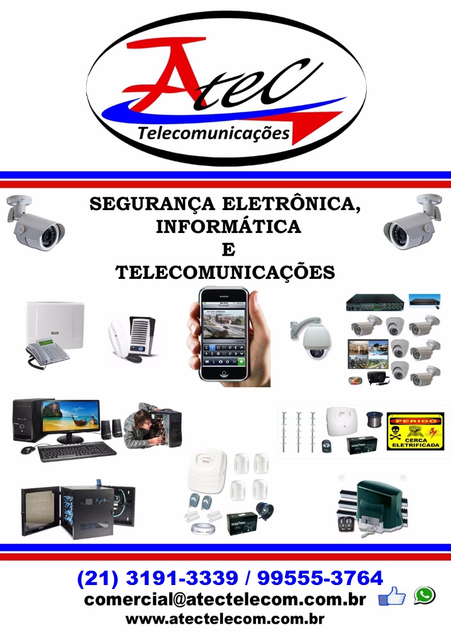 Oferecemos serviços e produtos da área de telecomunicações, tais como: CFTV (Câmeras), ALARME, TELEFONIA, PORTEIROS ELETRÔNICOS (Interfone), AUTOMATIZAÇÃO DE PORTÕES, CERCAS ELÉTRICAS, CONTROLE DE ACESSO, INFORMÁTICA E REDES.
