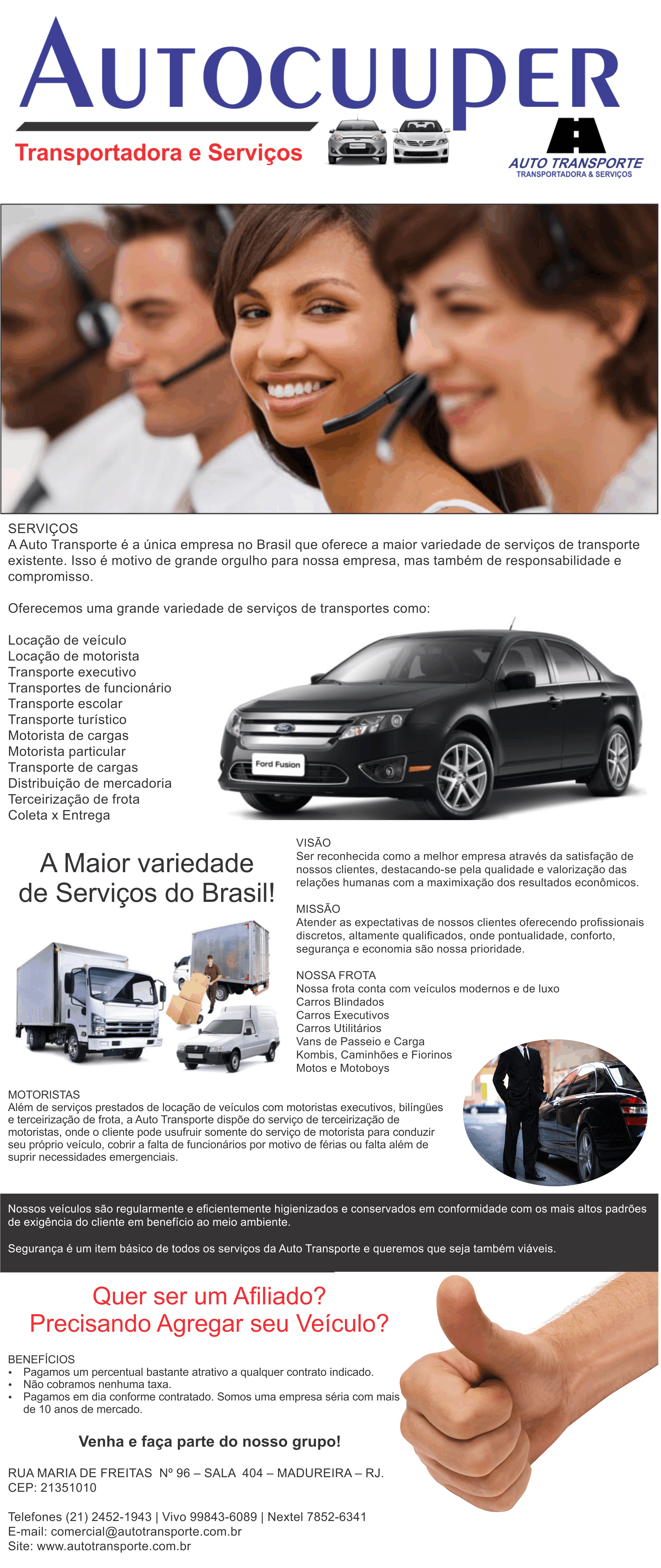Auto cuuper é uma empresa prestadora de serviços especializada em prestação de serviços de transportes e terceirização de frotas de veiculos para transportes de funcionário e transportes de funcionário,utilizando veiculos sedan e utilitário pequeno,medio e grande porte