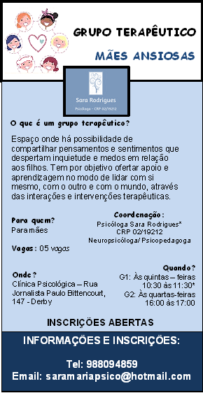 Com um acolhimento empático e humanizado voltado para o sofrimento psíquico e sintomático do paciente, Sara Rodrigues visa promover a qualidade de vida e fortalecer emocionalmente o sujeito nas suas disposições diárias. Atua de forma personalizada, de acordo com as demandas do paciente. Possui uma escuta atenta, que visa conhecer e estar à disposição do paciente, com flexibilidade. Especialidades Sara Rodrigues, CRP PE 02/19212, trabalha com serviços em psicologia clínica e psicopedagogia clínica. Realiza avaliações psicológicas, psicoterapias breves, avaliação e acompanhamento psicopedagógicos, assistência domiciliar e também serviços de palestras a escolas e empresas. O atendimento é voltado para crianças, adolescentes, adultos e idosos.