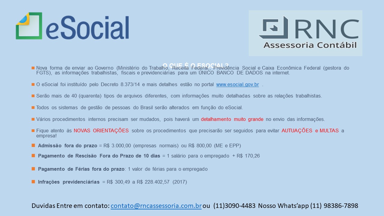 Gestão de Folha de Pagamento E-SOCIAL a partir de R$ 35,00