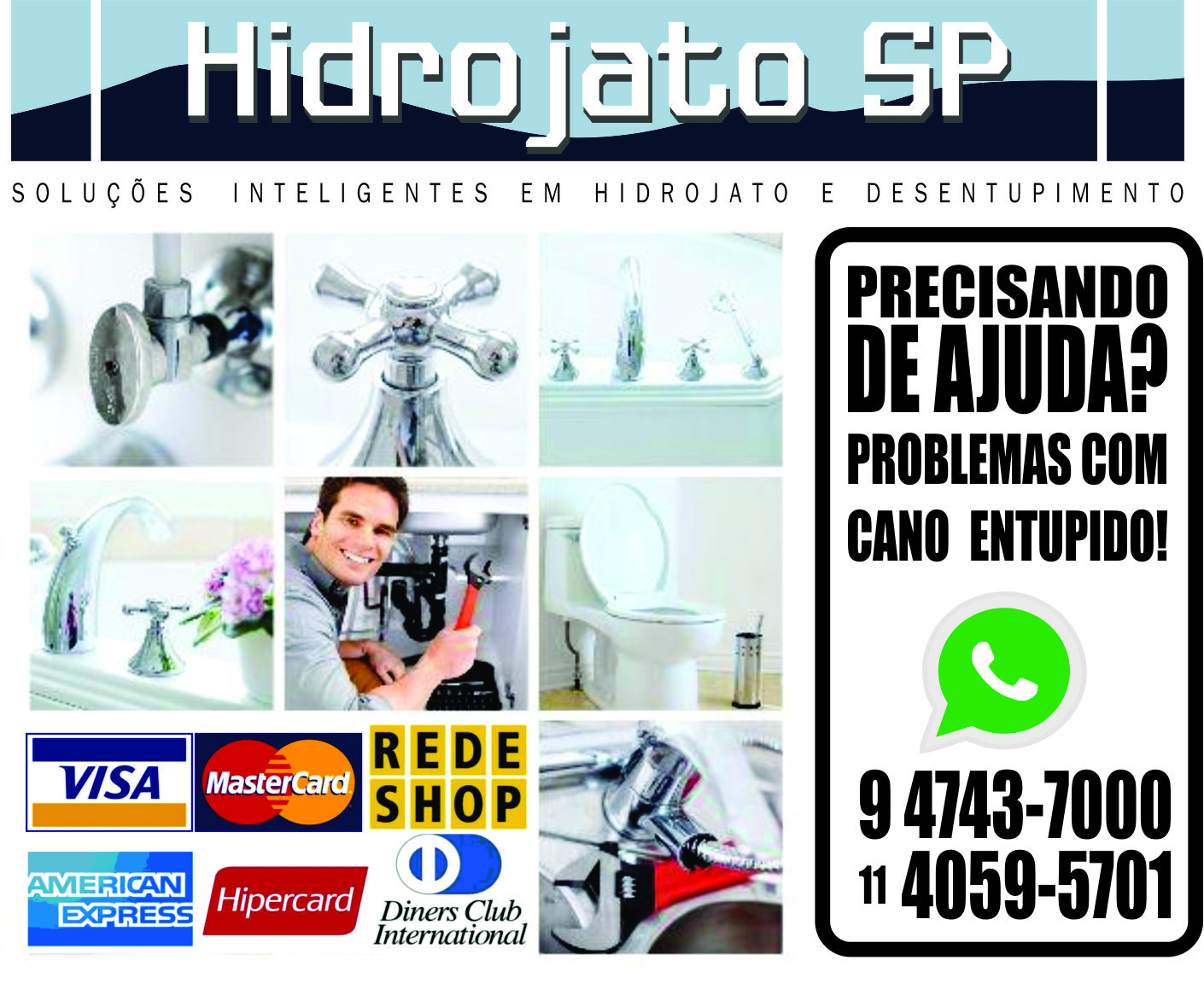 Desentupidora de pias, ralos, sanitários, redes de esgotos em geral, limpa fossa