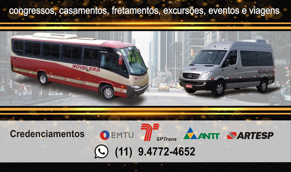 Nova Era Turismo e Fretamento é a mais nova solução em transporte de pessoas, presta serviços para Executivos, Fretamento, Turismo.