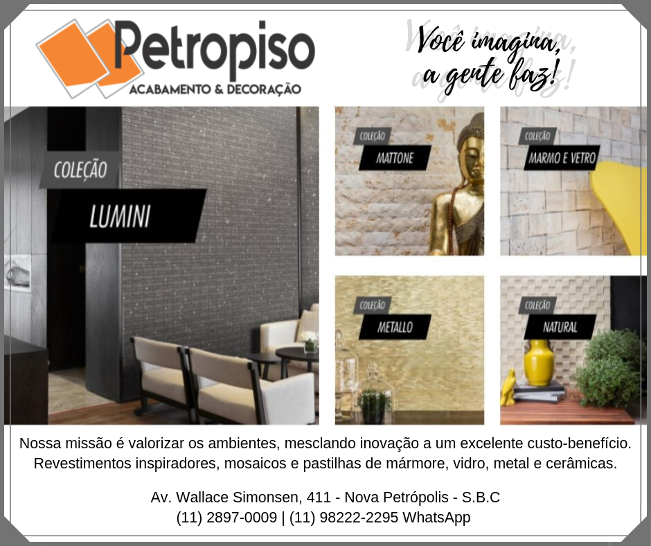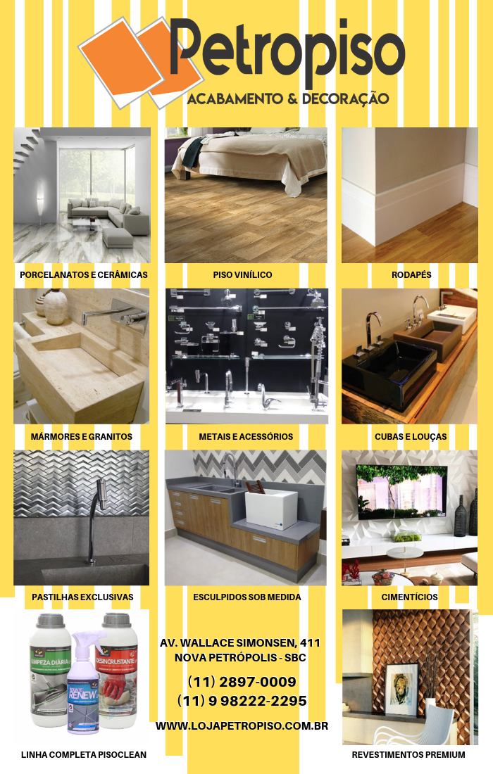 Especializada em revestimentos premium, a Petropiso atua em um novo conceito de loja de revestimentos, a partir de produtos e serviços diferenciados, a loja têm como produtos principais os porcelanatos e cimentícios, muitos deles exclusivos e assinados, além de louças e metais. A loja também contam com uma seleção primorosa de revestimentos em grandes formatos, pastilhas e opções personalizadas de cortes especiais com montagem de painéis, mosaicos e desenhos inusitados em cerâmica, vínilicos e mármores. Além disso, atuamos com uma equipe de projetistas e consultores que orientam os clientes, com a elaboração de projetos e soluções sob medida, a partir da medição e quantificação do material necessário, indicação da melhor forma de assentamento, visitas técnicas e acompanhamento da colocação por assentadores qualificados. O portfólio atual e as novas parcerias reforçam a proposta da Petropiso de oferecer beleza e funcionalidade com a mais alta tecnologia.