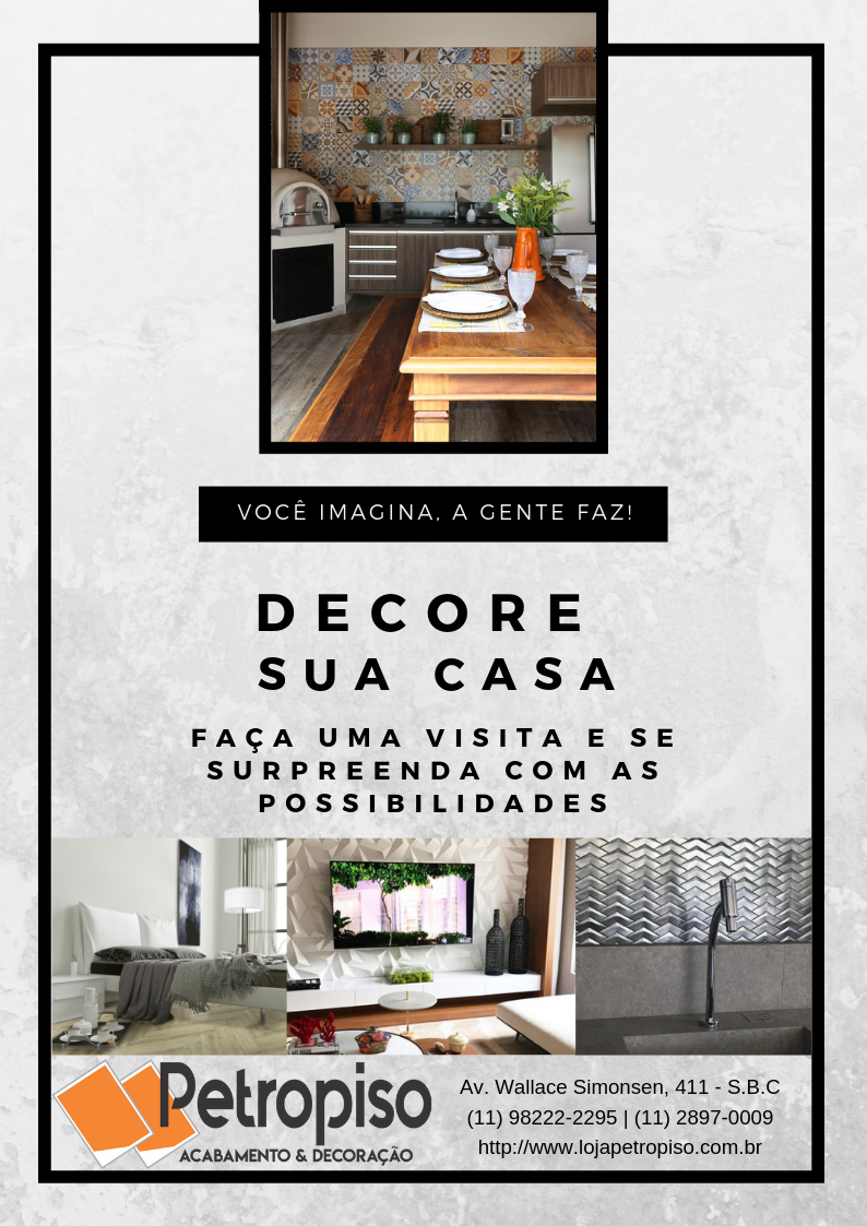 A loja Petropiso – Acabamento e Decoração – surgiu em 2013 em parceria com a FS Rocha Construtora com o objetivo de atender seus clientes, que buscam revestimentos de qualidade , com design e sofisticação, e preços acessíveis para suas obras. Com essa proposta, oferecemos os melhores produtos com marcas consolidadas e certificadas no mercado. Nossos valores e nossa busca pela excelência fazem com que nos voltemos exclusivamente ao bem-estar de nossos clientes. Contamos com uma equipe treinada e qualificada, auxiliando desde a sua compra até o final da obra.