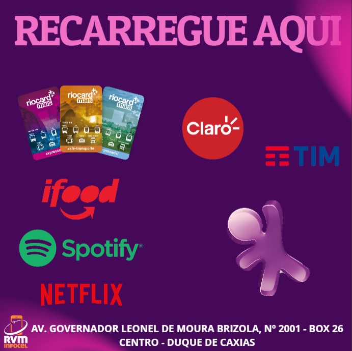 Realizamos recarga de celular pré-pago e RioCard+.