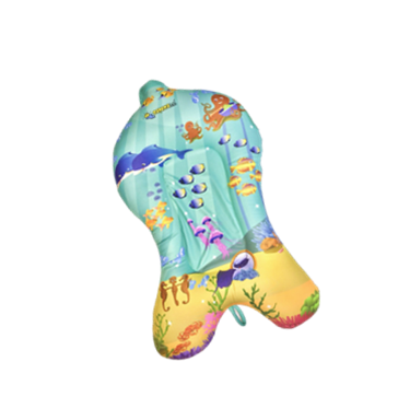 Cadeiras de alimentação infantil e almofadas para banho.