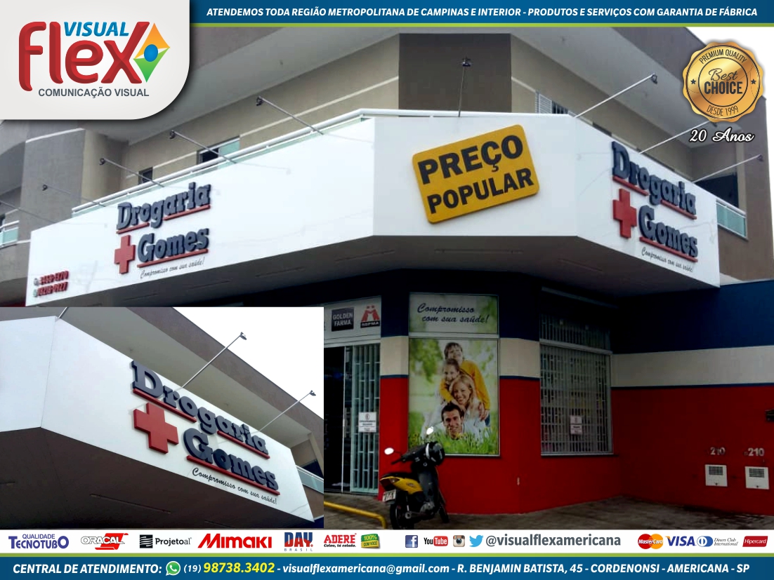 Visual Flex Americana – Comunicação visual, letreiros em led, letras caixa com relevo, adesivos de parede, decoração e sinalização comercial e industrial, impressão digital, criação de logomarcas, totens e luminosos, revestimentos em acm, e displays.