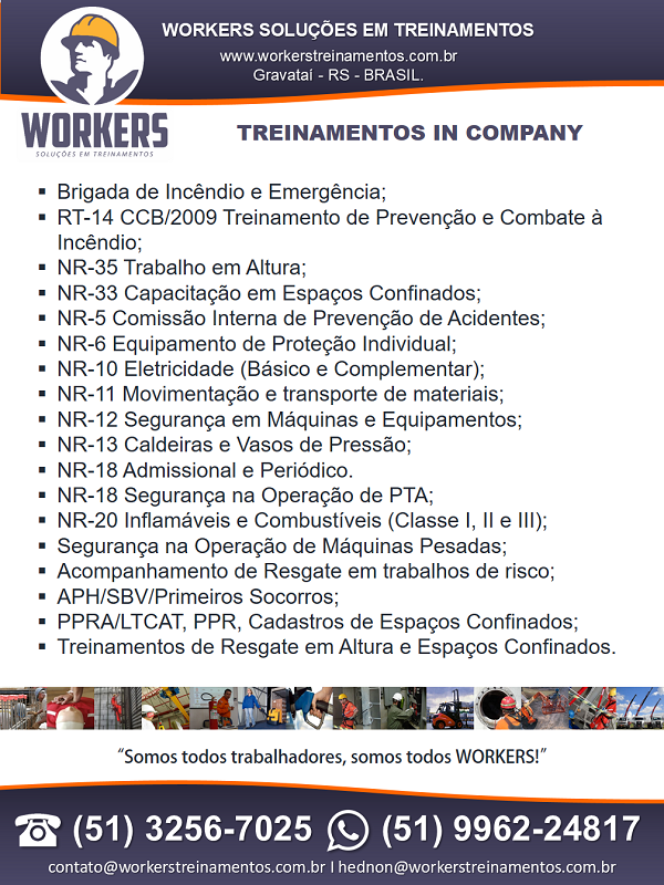 A Workers é uma empresa de Consultoria e Treinamentos, nosso objetivo é a capacitação das empresas e seus funcionários conforme as normas vigentes.